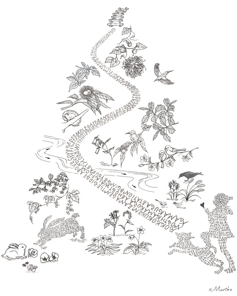 When creating this T-shirt graphic, I hoped to convey something of Kamakura’s satoyama landscape — the long relationship between people and nature, and the small creatures that live within it.